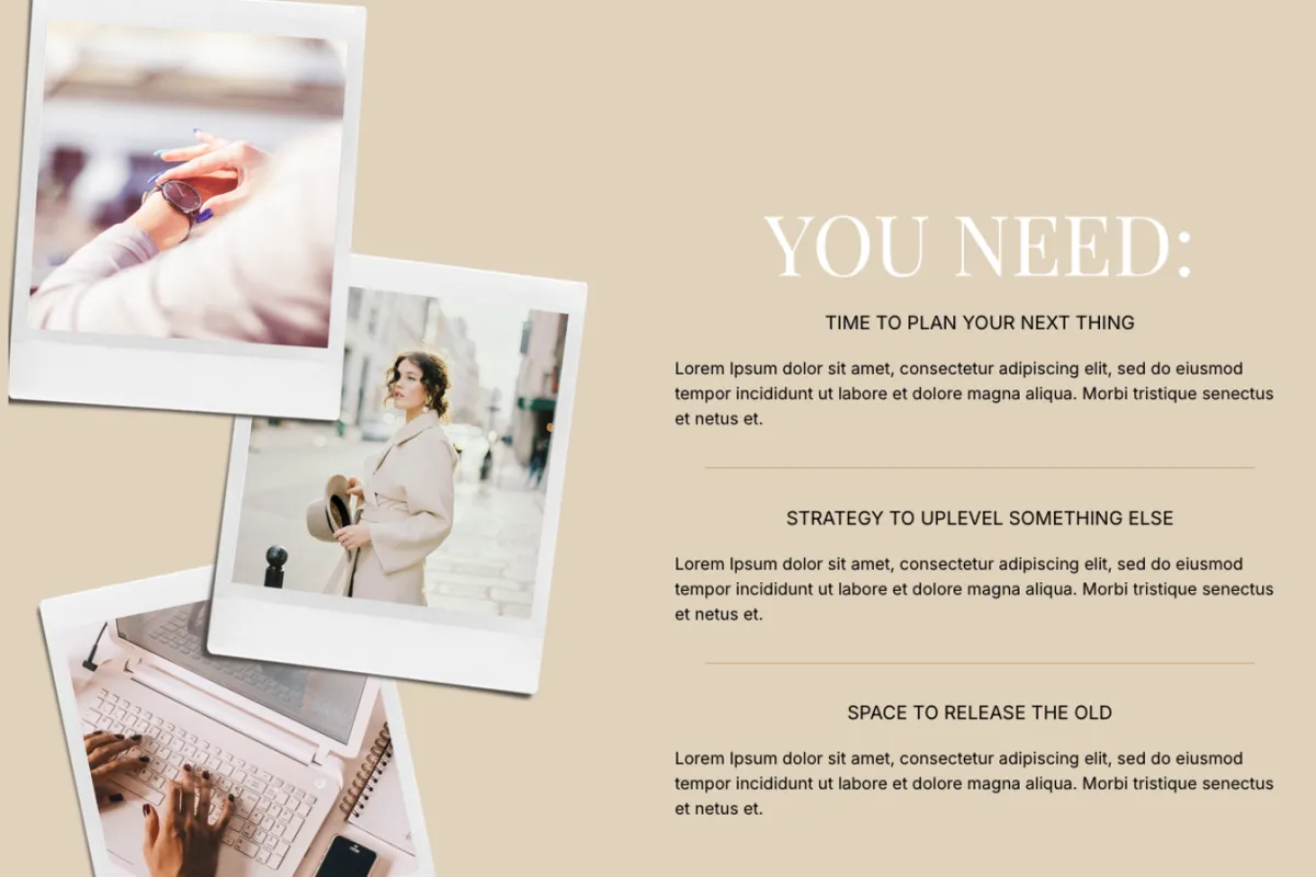 Short, high-impact video trainings. So you can add sections to an existing sales page or site. Or start from scratch. Quick guidance to launch beautifully.